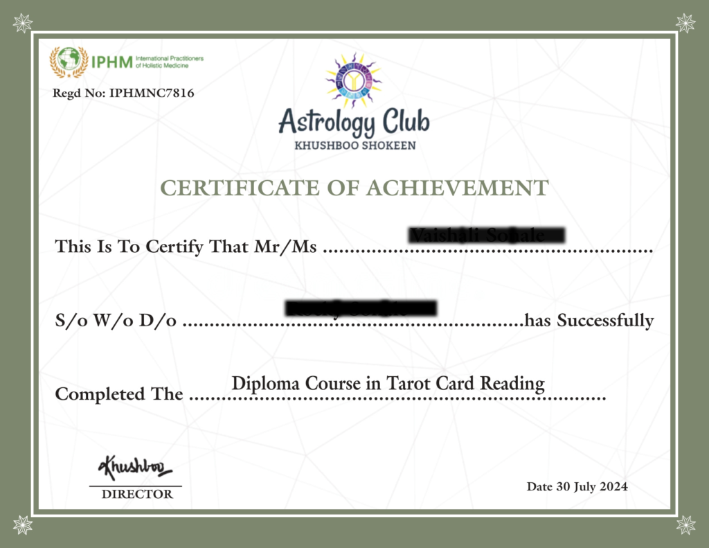 Working relentlessly for 14 years , Khushboo Shokeen is one of the most popular names in the field of Tarot Cards, Numerology, Reiki Healing & Vastu Shastra. She loves to assist those in need with her in-depth knowledge of these subjects. Her dedication to these subjects and commitment towards the people in general has helped her achieve coveted titles like Jyotish Shiromani and Ank Jyotish Shiromani. She has also pursued her interest in Tarot Reading to the extent that she has been awarded the best Tarot Reader in Delhi in 2016,2022,2023.